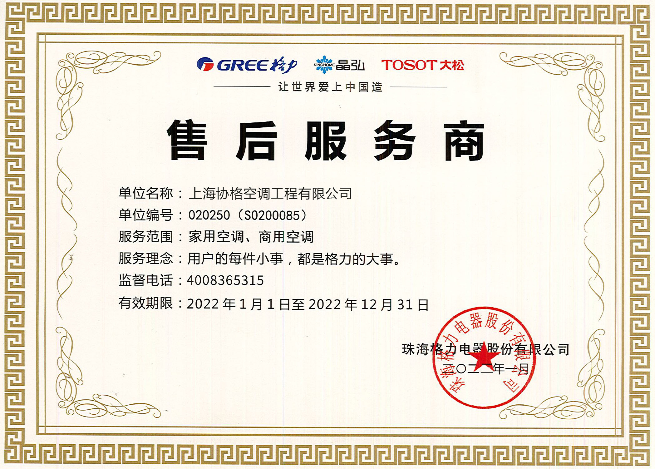 上海協(xié)格為上海攜福電器有限公司提供格力空調(diào)設(shè)備及安裝服務(wù)